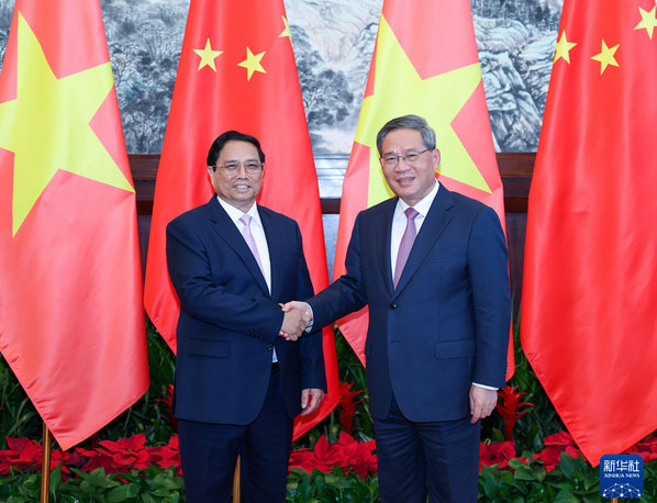 李强指出,中方愿同越方一道坚持好、把握好推进中越命运共同体建设的大方向,始终把发展两国关系放在本国外交的优先位置。双方要用足用好经济互补优势,以落实“一带一路”和“两廊一圈”战略对接为主线,不断扩大贸易投资规模,进一步加强互联互通,持续打造新能源、数字经济等合作新增长点,努力取得更多惠及两国人民的合作成果。中方愿同越方深化旅游、医疗、教育、青年等领域人文交流,不断夯实两国友好的民意基础。