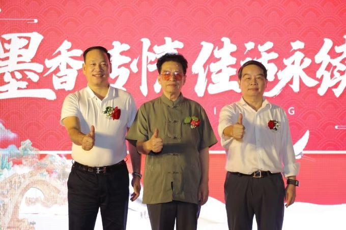韦克义在会上向广西客联会和祖龙集团赠送了书法作品,表达了对广西客联会和祖龙集团的美好祝愿和深厚情谊。